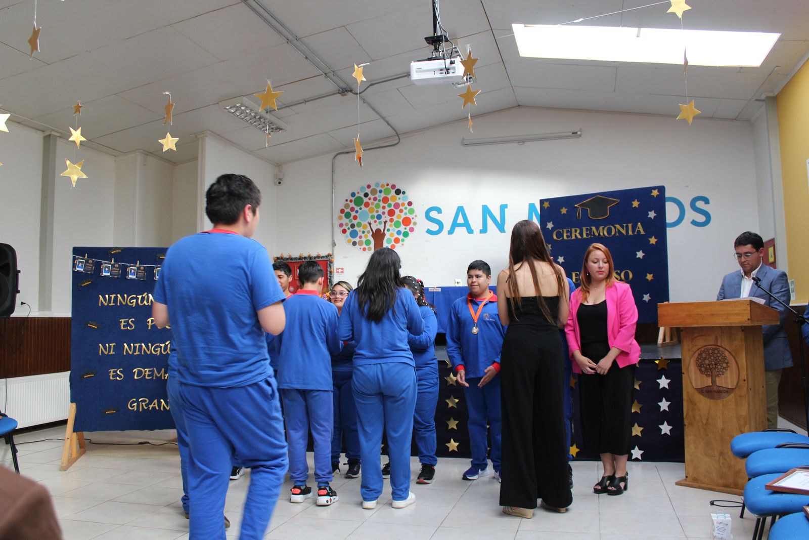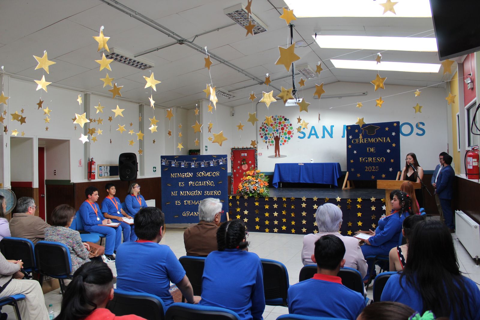 El viernes 19 de diciembre de 2025, el Colegio San Marcos celebró la ceremonia de egreso de los estudiantes de 8° básico de Educación Especial, un momento trascendental que marcó el cierre de una etapa fundamental en la trayectoria educativa de estos jóvenes y el inicio de un nuevo camino orientado a la formación laboral y al desarrollo pleno de su autonomía personal. Durante aproximadamente una hora y media, en las dependencias del establecimiento, el equipo directivo, educadores y familias se reunieron para reconocer el esfuerzo, la constancia y los aprendizajes adquiridos por estudiantes que han alcanzado un grado de autonomía significativo que les permitirá desenvolverse con mayor independencia tanto en su vida personal como en su futuro desempeño laboral.