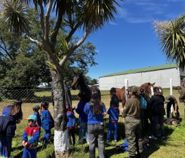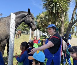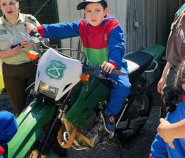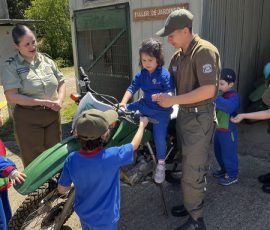 Durante aproximadamente 60 minutos, los estudiantes de NT1 B (profesora María José Silva y asistente Evelyn Guiñez), NT2 A (profesora Millaray Obredor y asistente Constanza Bravo) y NT2 B (profesora Tamara Medina y asistente Gabriela Oyarzun) recorrieron las dependencias de ESFOCAR acompañados por los alumnos aspirantes a carabineros. La visita permitió que los niños y niñas conocieran de cerca el proceso de formación policial y, especialmente, tuvieran la oportunidad de interactuar con los caballos de la unidad ecuestre y las motos policiales, momentos que resultaron particularmente emocionantes para los pequeños visitantes.